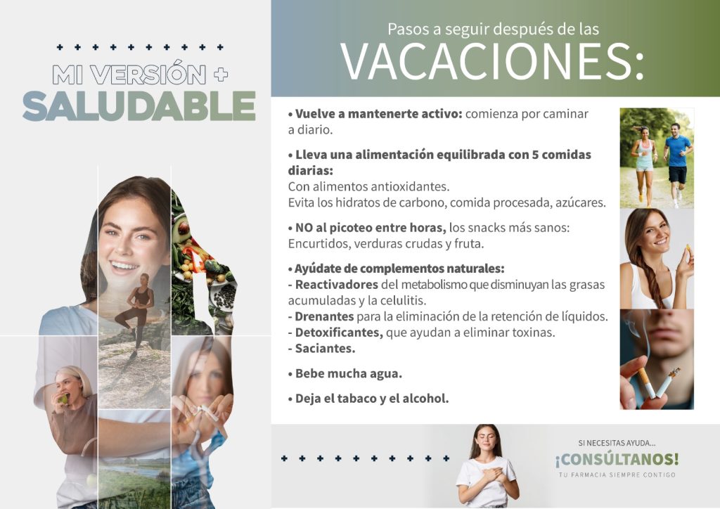 Descubre tu versión + saludable ❤❤❤ Te dejamos los pasos a seguir después de las vacaciones ¡Consúltanos! Tu farmacia siempre contigo #hábitossaludables #AlimentaciónSana #ejercicio #deporte #salud #farmacia